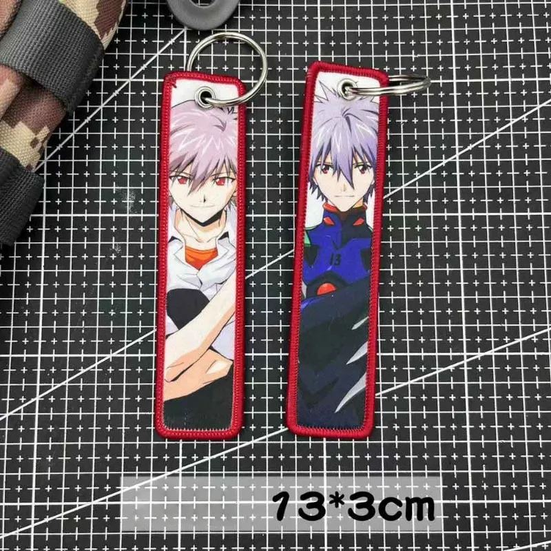 Evangelion Anime Embroidery Key Tag Motorcycles Cars Keychain